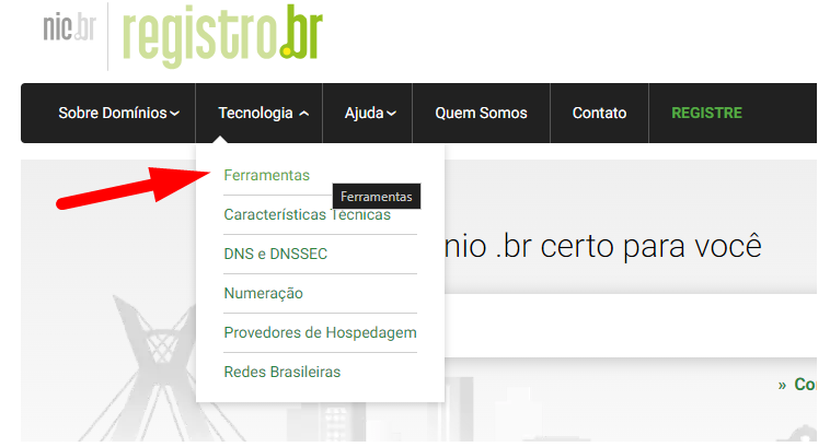 2. Na aba 'Tecnologia clique em 'Ferramentas'
