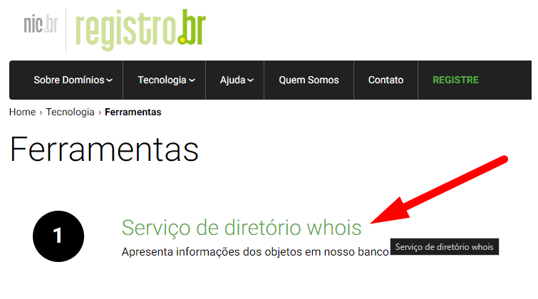 3. Clique na opção 'Serviço de diretório whois'