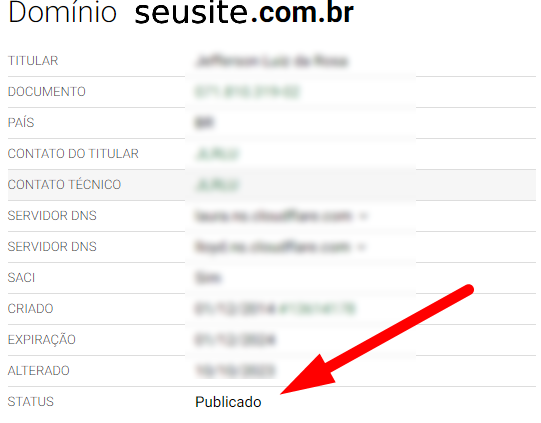 5. Se o status estiver 'publicado' está tudo certo com o seu domínio.